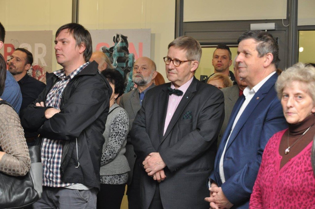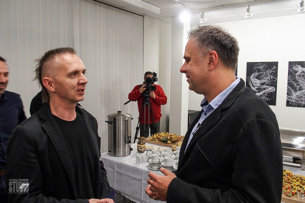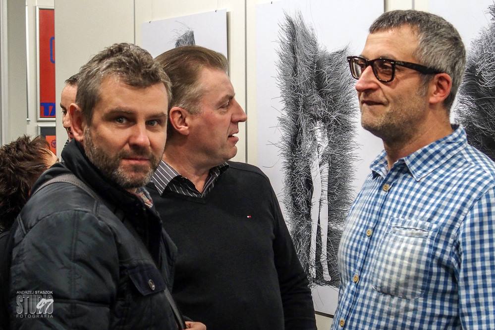 W n klubie sztuka i edukacja – wystawy: Janusza Jurka (ostrowianina) i prof. Tadeusza Piskorskiego (ostrowianina, teraz w Poznaniu). Tłumnie świętowaliśmy „dzień dobrej plastyki”! A i jeszcze jedno: Janusz Jurek jest uczniem naszego prof. Tadeusza Gaworzewskiego (na zdjęciu na drugim planie), natomiast Tadeusz jest uczniem prof. Tadeusza Piskorskiego… jaki piękny łańcuch wiedzy i sztuki… międzypokoleniowej…Bravo dla Czarka Janiszewskiego!… zatem nie ilość, a jakość – tak trzymać!”