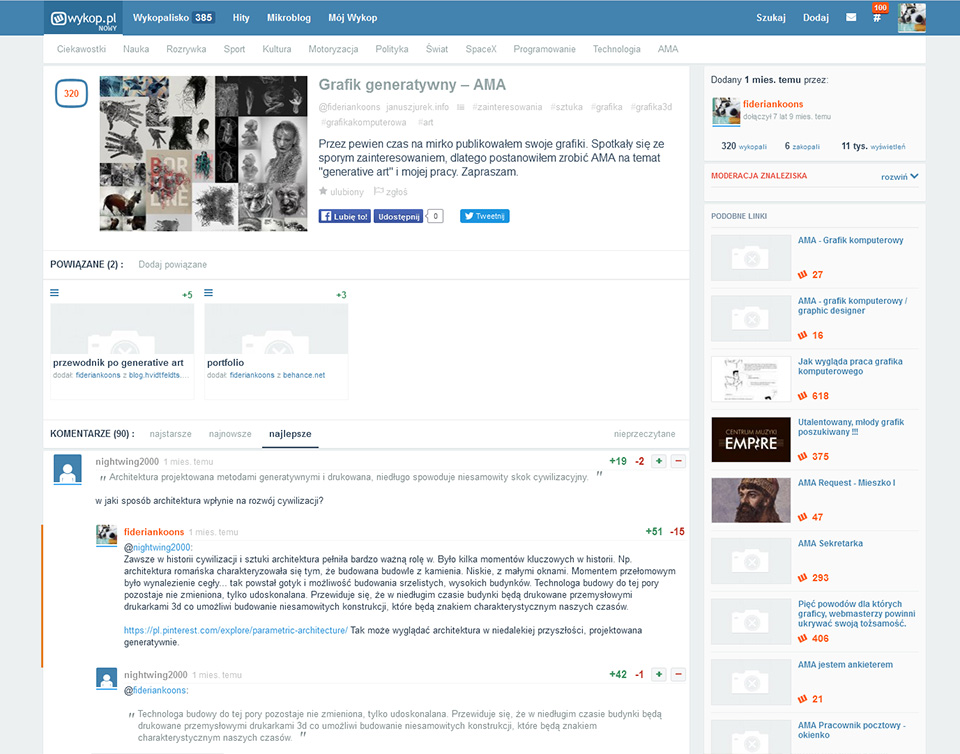 AMA na Wykopie! Janusz Jurek22 kwietnia 20162016, Projekty, Publlikacje w magazynach Grafik generatywny, czyli spytaj mnie o wszystko. http://www.wykop.pl/link/3116419/grafik-generatywny-ama/