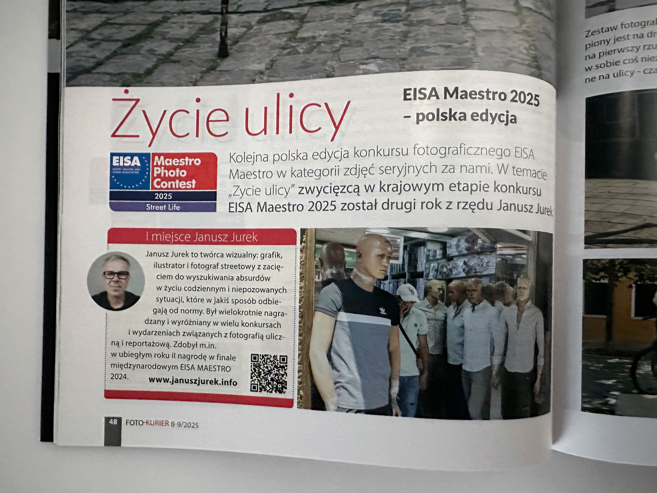 i wydarzeniach związanych z fotografią uliczną i reportażową. Zdobył m.in. w ubiegłym roku II nagrodę w finale międzynarodowym EISA MAESTRO 2024.