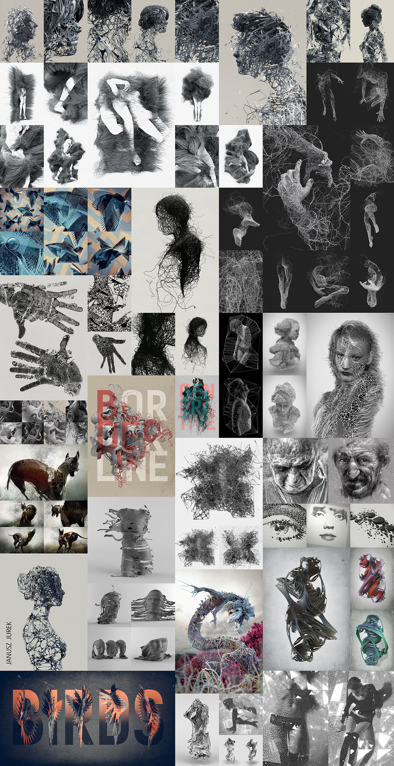 Ponieważ przez wiele lat uczyłem się rysunku uznałem, że mogę opracować technikę rysowania w wirtualnym środowisku 3D. Wykorzystując zasady klasycznego rysunku, przenosząc to jednocześnie w przestrzeń wirtualną udało mi się połączyć rysunek z rzeźbą. Autorska technika w naturalny sposób wygenerowała temat. Skoro bowiem odwołałem się do podstawowych zasad, postanowiłem wykorzystać najbardziej klasyczny i oczywisty temat, czyli ludzkie ciało: idealne i piękne, zarazem ułomne. Wiązki cienkich linii splatam ze sobą by w końcu nadać im zintegrowaną formę.